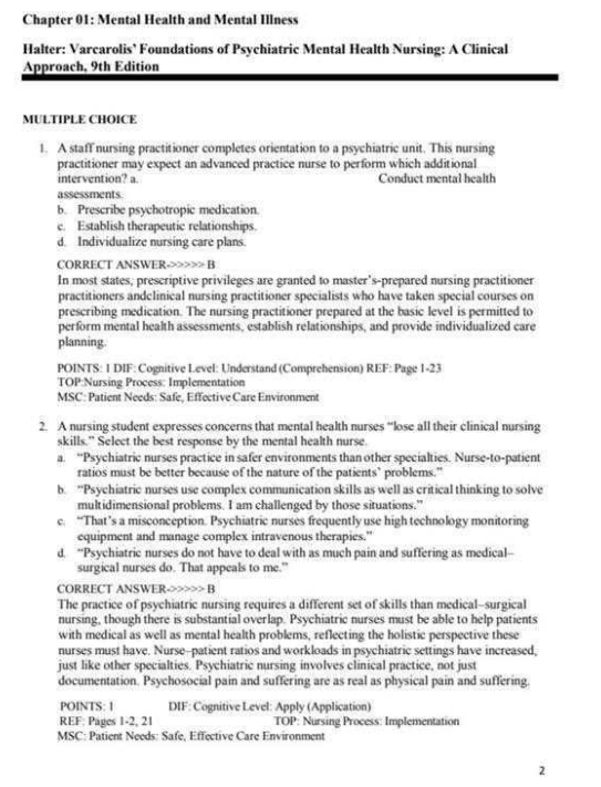 The Varcarolis’ Foundations of Psychiatric-Mental Health Nursing, 9th Edition Test Bank by Margaret Jordan Halter is more than just a question set—it is a comprehensive exam preparation and learning resource that supports success in both nursing school and clinical psychiatric practice.